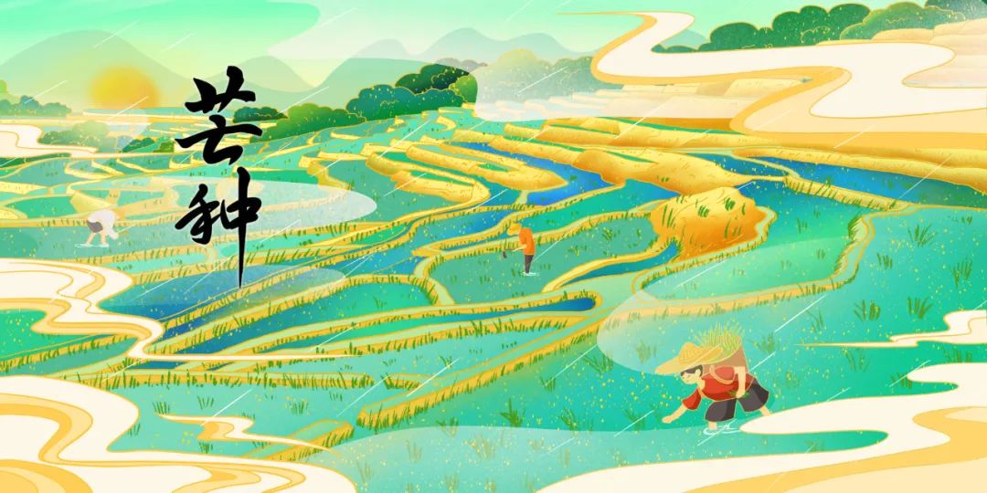 芒 種 MANGZHONG 二十四節氣 ![]() 芒種,是二十四節氣之第九個節氣,夏季的第三個節氣,干支歷午月的起始。斗指巳,太陽黃經達75°。 于每年公歷6月5-7日交節。“芒種”含義是“有芒之谷類作物可種,過此即失效”。 這個時節氣溫顯著升高、雨量充沛、空氣濕度大,適宜晚稻等谷類作物種植。 農事耕種以“芒種”這節氣為界,過此之后種植成活率就越來越低。它是古代農耕文化對于節令的反映。 ![]() 農歷書說:“斗指巳為芒種,此時可種有芒之谷,過此即失效,故名芒種也。” 意思是講,芒種節氣適合種植有芒的谷類作物;其也是種植農作物時機的分界點,過此即失效。 民諺“芒種不種,再種無用”講的就是這個道理。芒種是一個耕種忙碌的節氣,民間也稱其為“忙種”。 這個時節,正是南方種稻與北方收麥之時。 ![]() 芒種節氣的氣候特點是氣溫顯著升高、雨量充沛、空氣濕度大。這期間高溫天氣頻發,濕度大且多悶熱,無論是南方還是北方,都有出現高溫天氣的可能。 芒種節氣,中國南方的華南地區東南季風雨帶穩定,江南地區進入梅雨。芒種節氣,中國北方地區尚未進入雨季。 芒種的氣象諺語有很多,如“芒種夏至天,走路要人牽”、“芒種落雨,端午漲水”、“芒種夏至是水節,如若無雨是旱天”。 ![]() 中國古代一些文學作品將芒種節氣十五天分為三候:一候螳螂生,二候鵙始鳴,三候反舌無聲。 意思是在芒種節氣時,螳螂卵因氣溫變化而破殼生出小螳螂;喜陰的伯勞鳥開始在枝頭出現,并且感陰而鳴。而反舌鳥,卻因感應到了氣候的變化,慢慢停止了鳴叫。 在芒種節氣里要注意增強體質,避免季節性疾病和傳染病的發生,如中暑、腮腺炎、水痘等。 芒種的養生重點要在精神調養上,應該使自己的精神保持輕松、愉快的狀態,不要惱怒憂郁,氣機得以宣暢、通泄。 ![]() |